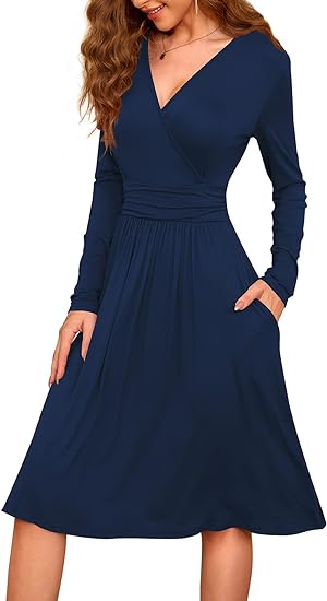 WEACZZY Womens Long Sleeve Deep V-Neck Formal Dress offers a blend of sophistication and practicality. With its deep V-neckline, long sleeves, and knee-length hem, this dress exudes elegance for formal occasions. The pleated waist adds a touch of refinement, creating a flattering silhouette. Notably, the inclusion of pockets adds both style and functionality. WEACZZY prioritizes comfort and fashion, ensuring that women feel confident and chic in their formal attire. This Long Sleeve Formal Dress is a versatile choice, providing a balance of timeless design and modern practicality for various events.
